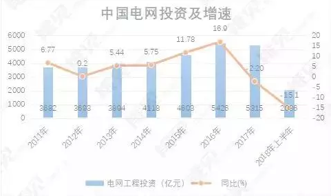 “十二五”以來(lái),我國(guó)電網(wǎng)投資總體都保持增長(zhǎng),2017年電網(wǎng)投資開(kāi)始出現(xiàn)首次下降。國(guó)家能源局的最新數(shù)據(jù)顯示,2018年上半年,我國(guó)電網(wǎng)工程投資金額為2036億元,同比大幅下滑15.1%。
