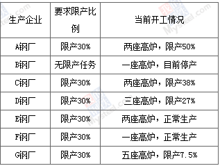 1、高爐調(diào)研樣本選取天津市共7家長(zhǎng)流程鋼廠,16座大小高爐,高爐設(shè)計(jì)總產(chǎn)能為2030萬(wàn)噸,目前共有11座高爐正常生產(chǎn),5座高爐停產(chǎn)檢修。根據(jù)《天津市2018—2019年采暖季工業(yè)企業(yè)錯(cuò)峰生產(chǎn)工作方案》,我們對(duì)各鋼鐵企業(yè)限產(chǎn)評(píng)級(jí)和實(shí)際限產(chǎn)情況進(jìn)行調(diào)研:
