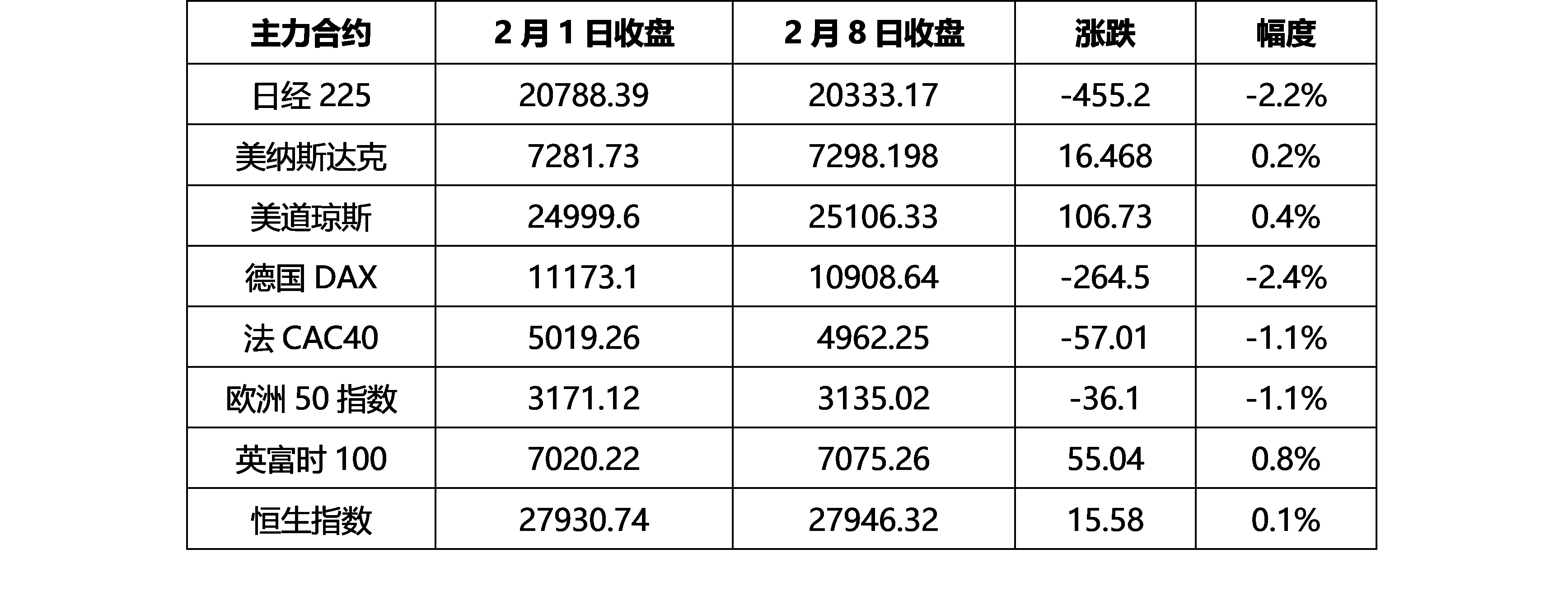 The dollar index rose 1.08 per cent during the Spring Festival, the biggest weekly gain in six months. The dollar index rose 0.06 per cent on February 8 to 96.6405, a seven-day high for more than a month, as traders rushed to buy the dollar to avoid danger, fearing the global economy would weaken. The euro still recorded its biggest Zhoudu drop against the dollar for more than four months, a factor that suggests the European slowdown is spreading. Global stock markets were mixed, with the euro zone performing worst. From February 1st to February 8th, the global stock index performed better than the US stocks in Japan and the euro zone, and the European market in the UK was stronger than the euro zone. The main reason was the continuous contradictions in the European market last week, the United Kingdom's Brexit, France's desire to fight evil, and Italy's lower growth expectations. The market has become more risk-averse.